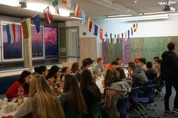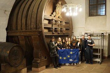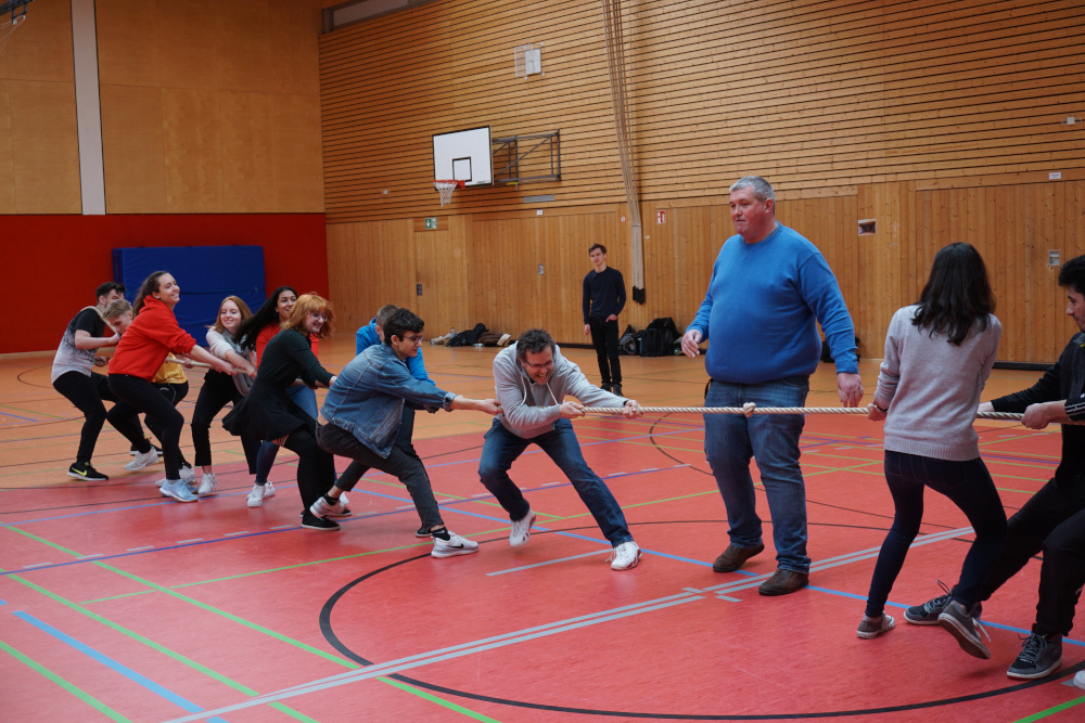 Auch die Politik kam nicht zu kurz. Und welches Thema böte sich hier besser an als die aktuelle Europawahl, die gemeinsam mit externen Referenten diskutiert wurde. Die lokale Kultur lernten die Gastschüler unter anderem bei einem gemeinsamen Ausflug zum Schloss Heidelberg kennen. Sportliches Highlight war der Besuch des Handball-Derbys zwischen der SG BBM Bietigheim und dem TVB Stuttgart. Die jungen Teilnehmer waren aber auch selbst sportlich aktiv bei einem gemeinsamen Bowlingabend und vor allem beim ERASMUS+ Sportturnier, bei dem sie sich in internationalen Teams im Basketball, Fußball oder auch Hockey miteinander messen konnten.