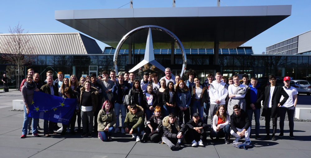 Ein weiterer Schwerpunkt des ERASMUS+ Projekts bestand darin, den Schülern praktische Einblicke in international agierende Großunternehmen zu ermöglichen. Und wo wäre dies eher möglich als in Württemberg? Deshalb standen Betriebsführungen und Experteninterviews bei Mercedes-Benz und BASF auf dem Programm. Welche konkreten Anforderungen lokale Arbeitgeber an ihre Mitarbeiter stellen, erfuhren die internationalen Gastschüler am sog. Berufsinformationstag, bei dem sich hiesige Unternehmen und Institutionen an der ASS vorstellten und um Auszubildende warben.