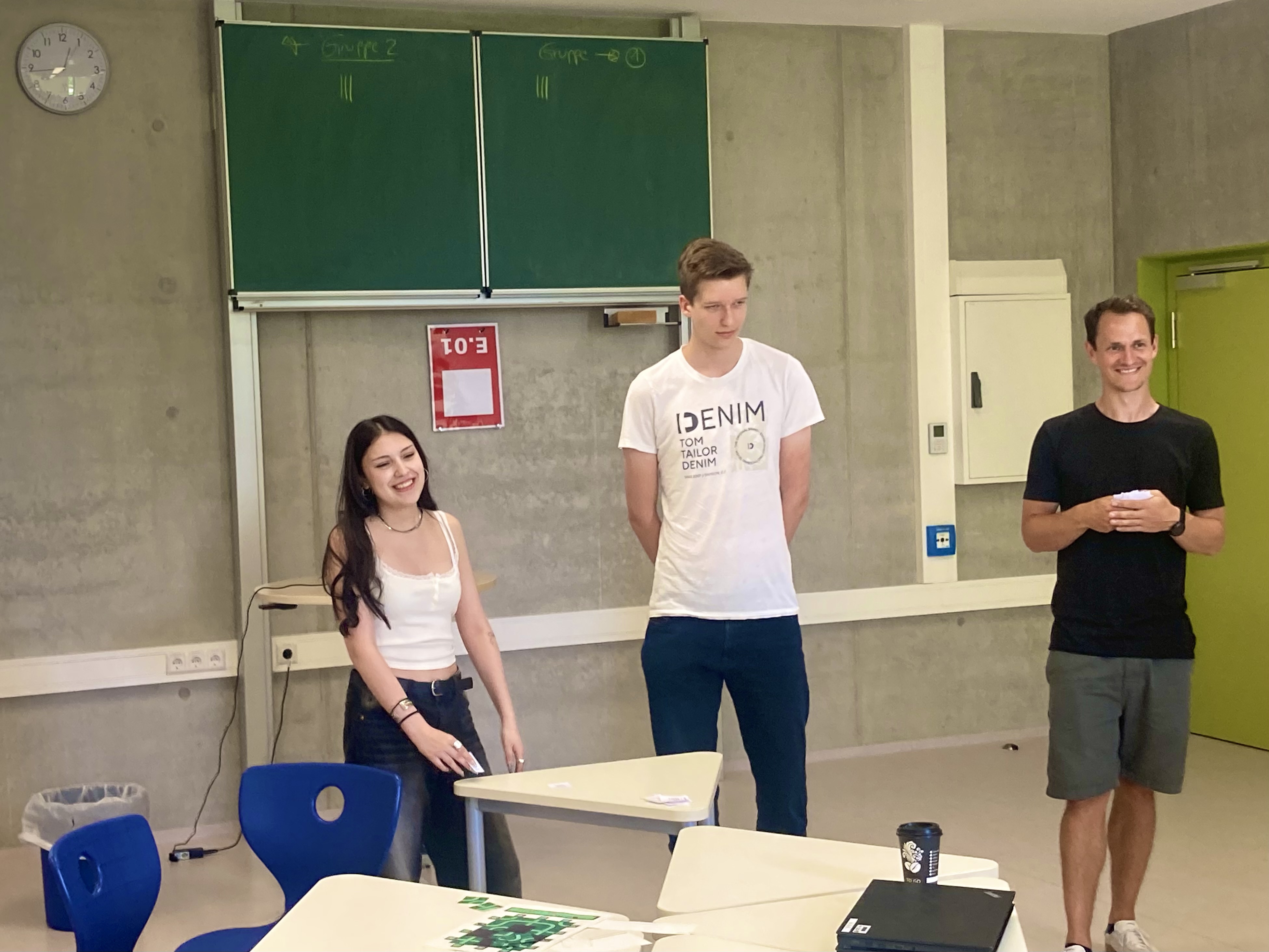 Dabei waren Scharfsinn und Kreativität gefragt. Natürlich lief nicht immer alles nach Plan, da wir uns innerhalb der Gruppen manchmal nicht einig waren, sondern heiße Diskussionen führten. Dazu hatten wir nur 45 Minuten Zeit und mussten schnell auf das nächste Level kommen. Aber so lernten wir, dass man gerade unter Zeitdruck Ruhe bewahren und eindeutig kommunizieren muss. Am Ende schafften es alle Gruppen gemeinsam, die 16 Hinweise zu lösen und wir verhinderten somit den Hackerangriff.