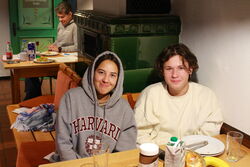 Der nächste Morgen fing für manche von uns sportlich an, denn nicht jeder schaffte es pünktlich zum Frühstück. Zum Ausgleich mussten die Trödler 20 Liegestütze machen. Nach dem Frühsport gab es zum Glück ein leckeres Frühstück mit ofenfrischen Brötchen, wieder zubereitet von einer verantwortlichen Schülergruppe. Danach wartete auf uns das Quiz „Der große Preis“, bei dem wir erneut in Gruppen gegeneinander antraten. Diesmal ging es aber nur um Wissen und wir wählten nacheinander aus den Kategorien Mathe, Politik, Geschichte, Wirtschaft, Kunst und Kultur sowie Sport unterschiedlich schwere Fragen aus, die uns die beiden Quizmaster Herr Nagler und Herr Wenzel präsentierten. Immer wenn eine Gruppe die richtige Antwort wusste, gewann sie die entsprechenden Punkte. Lässig meisterten wir Fragen, wie z.B. Nenne "drei ehemalige deutsche Kolonien in Afrika“ oder „vier Bundeskanzler in der richtigen Reihenfolge“. Aber wer soll bitte wissen, welcher Sportler mit einem grünen Sakko ausgezeichnet wird? Auch mit der Frage „Was ist das Bruttosozialprodukt?“ kämpften alle Gruppen reihum vergeblich. Irgendetwas hatten die überkritischen Quizmaster immer an unseren Antworten auszusetzen und stichelten mit der provokanten Nachfrage: „Welches Fach steht nochmal am häufigsten pro Woche in eurem Stundenplan?“ An dieser Stelle aber ein friendly reminder in die andere Richtung: Auf den großen Preis, den bereits der Name des Spiels ankündigt, wartet die Siegergruppe bis heute …