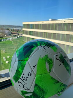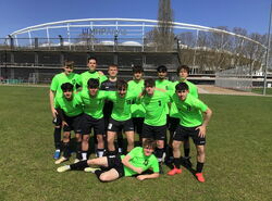 Personell stark verändert traten wir dann am frühen Morgen des 8. April die Reise nach Stuttgart an. Bei bestem Wetter und vor der herrlichen Kulisse der MHP-Arena starteten wir als jüngstes Team gegen die Gustav v. Schmöller-Schule Heilbronn mit einem soliden 0:0 ins Turnier. Insgesamt nahmen die zehn besten Mannschaften des Regierungspräsidiums Stuttgart, eingeteilt in zwei Fünfergruppen, teil. Der Gruppenerste und der Gruppenzweite sollten sich für das Halbfinale qualifizieren. Nach einem weiteren Unentschieden gegen den Turniermitfavoriten aus Waiblingen und einem souveränen Sieg gegen die Akademie für Kommunikation aus Stuttgart standen wir gegen die Crailsheimer stark unter Druck. Ein Sieg war Pflicht, andernfalls wären wir ausgeschieden. Ein fulminanter Freistoßtreffer in der letzten Spielminute brachte die Erlösung und den Halbfinaleinzug.