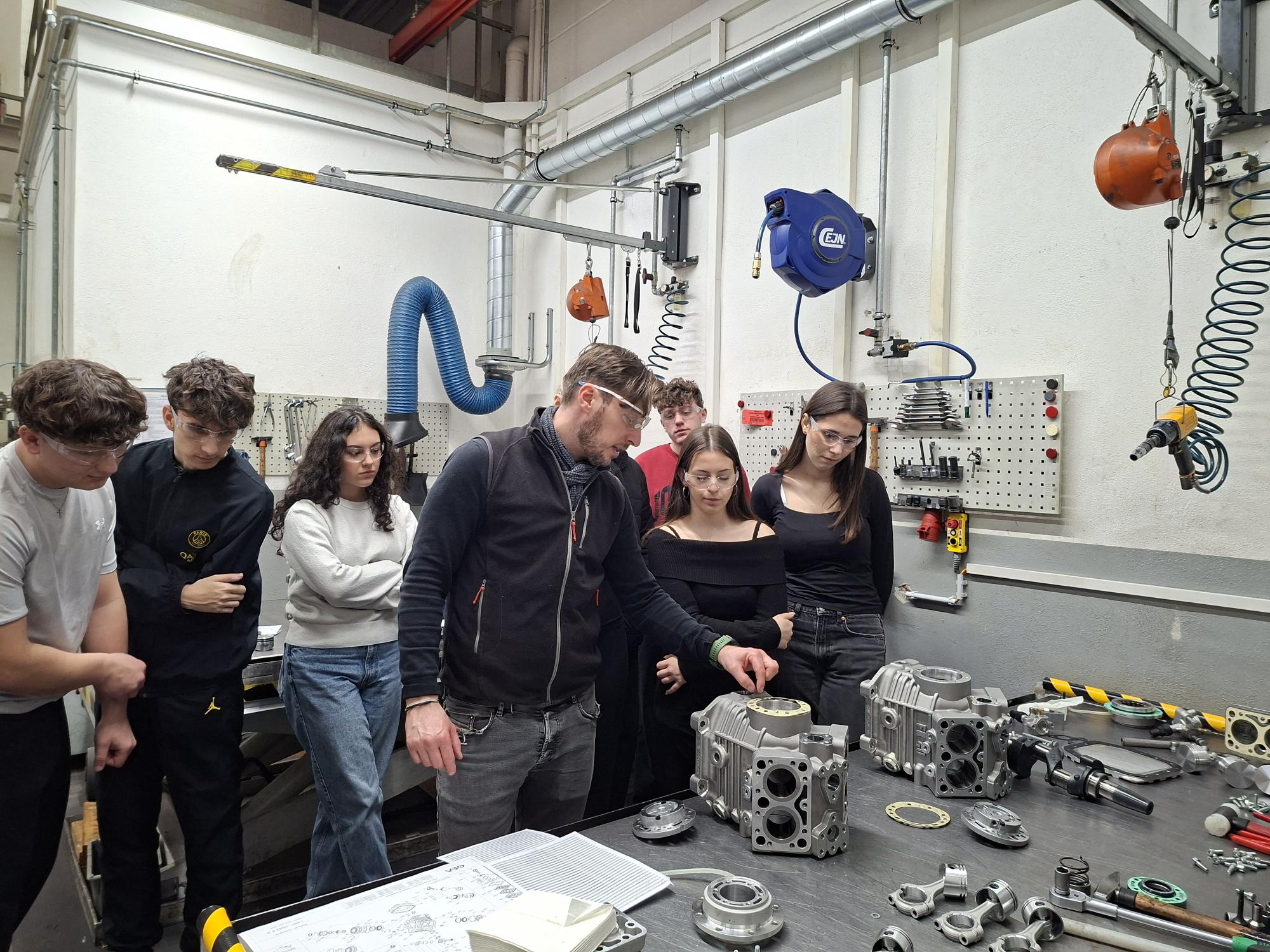 Zum Abschluss durften wir einen Kompressor mithilfe einer Anleitung und unterstützt durch Mitarbeiter der Fa. Bock GmbH auseinanderbauen und anschließend wieder zusammensetzten.