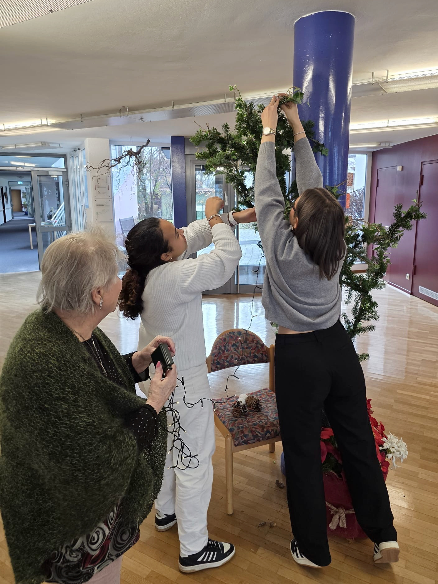 Schon beim Ankommen wurden wir jedes Mal freundlich empfangen und über den Tagesplan informiert. Mal besuchten wir Bewohnerinnen und Bewohner auf ihren Zimmern, unterhielten uns mit ihnen oder spielten gemeinsam Gesellschaftsspiele. Jede zweite Woche fand außerdem ein Kreativnachmittag statt, den wir mitgestalten durften. Dort haben wir gebastelt, Mandalas ausgemalt, Weihnachtsdeko gestaltet und den Eingangsbereich geschmückt. Besonders schön war die Weihnachtszeit: Gemeinsam mit der Kreativgruppe, der Leitung und den Bewohnern, insgesamt etwa zehn Personen, tranken wir Tee und aßen Plätzchen. Diese gemütliche Stimmung bleibt mir besonders in Erinnerung.